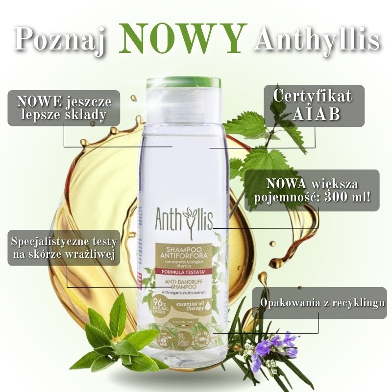 ANTHYLLIS SHAMPOO ANTIFORFORA – delikatny certyfikowany szampon przeciwłupieżowy z piroktonem olaminy, pokrzywą i szałwią 300 ml