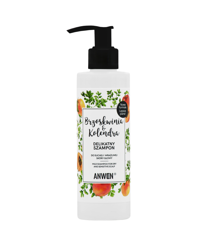 Strona Główna / Szampony / ANWEN BRZOSKWINIA I KOLENDRA – delikatny szampon do suchej i wrażliwej skóry głowy