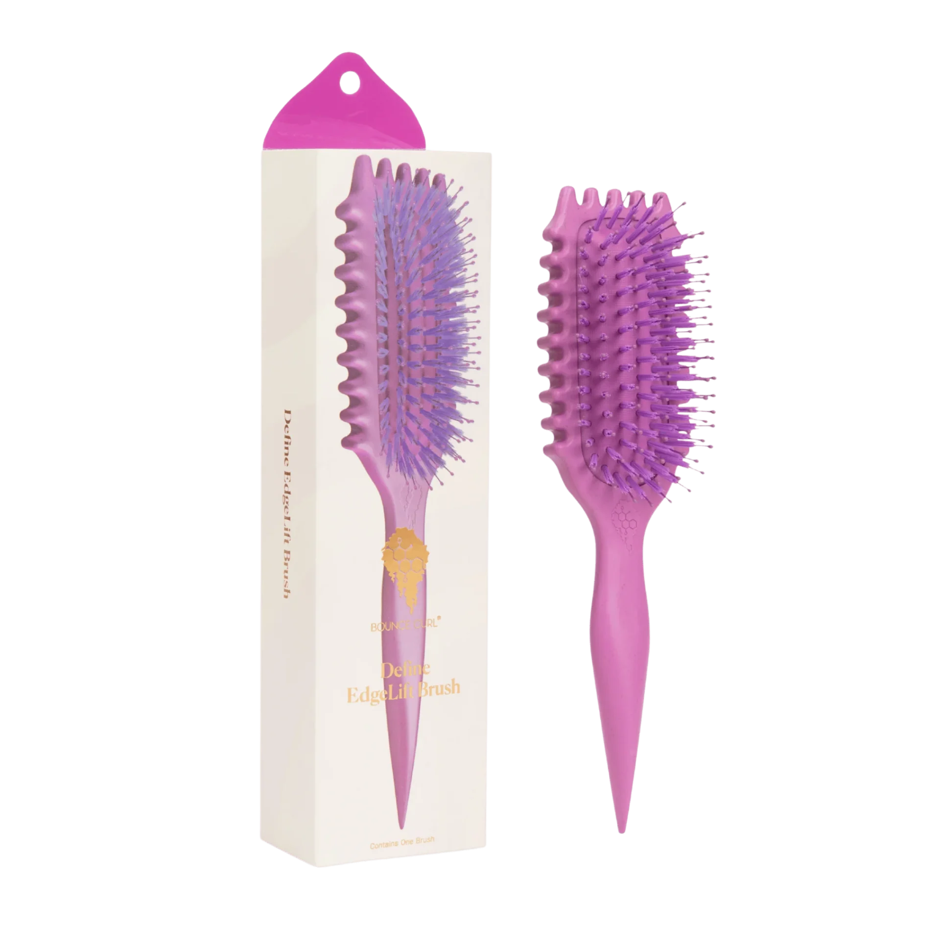 Przedstawiamy niestandardową, opatentowaną szczotkę Define EdgeLift Brush. Charakterystyczne boczne krawędzie szczotki Define EdgeLift Brush mają średnie odstępy między sobą, co pozwala bez wysiłku zdefiniować kępki loków. Wykonana z materiałów pochodzenia biologicznego i zaprojektowana specjalnie w celu podkreślenia fal, loków i zwojów, konstrukcja „EdgeLift” stworzona przez założyciela marki Bounce Curl, Meriana, wyróżnia tę szczotkę.