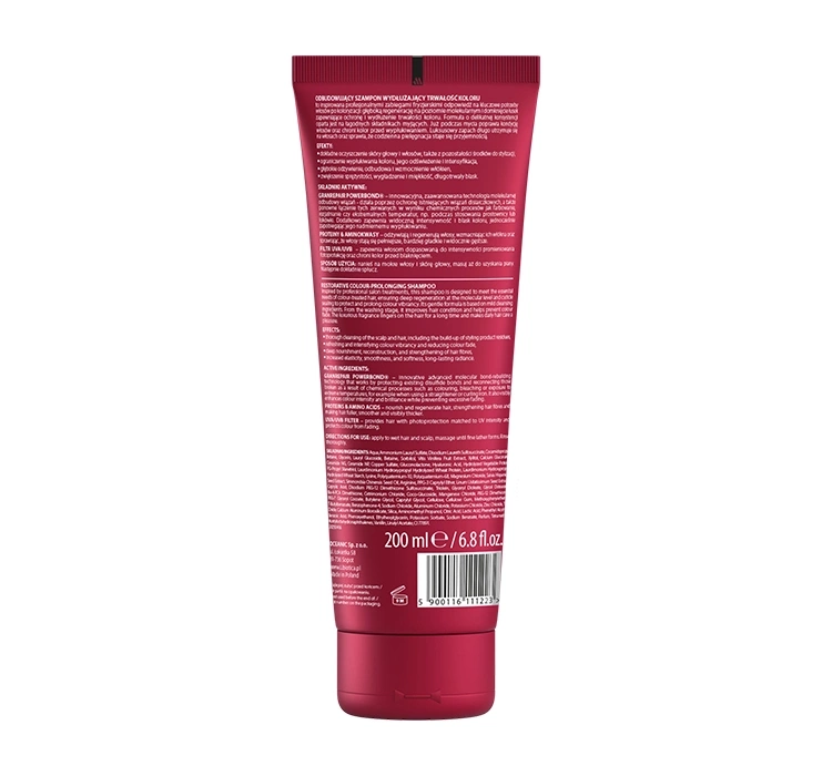 Odbudowujący szampon wydłużający trwałość koloru to inspirowana profesjonalnymi zabiegami fryzjerskimi odpowiedź na kluczowe potrzeby włosów po koloryzacji: głęboką regenerację na poziomie molekularnym