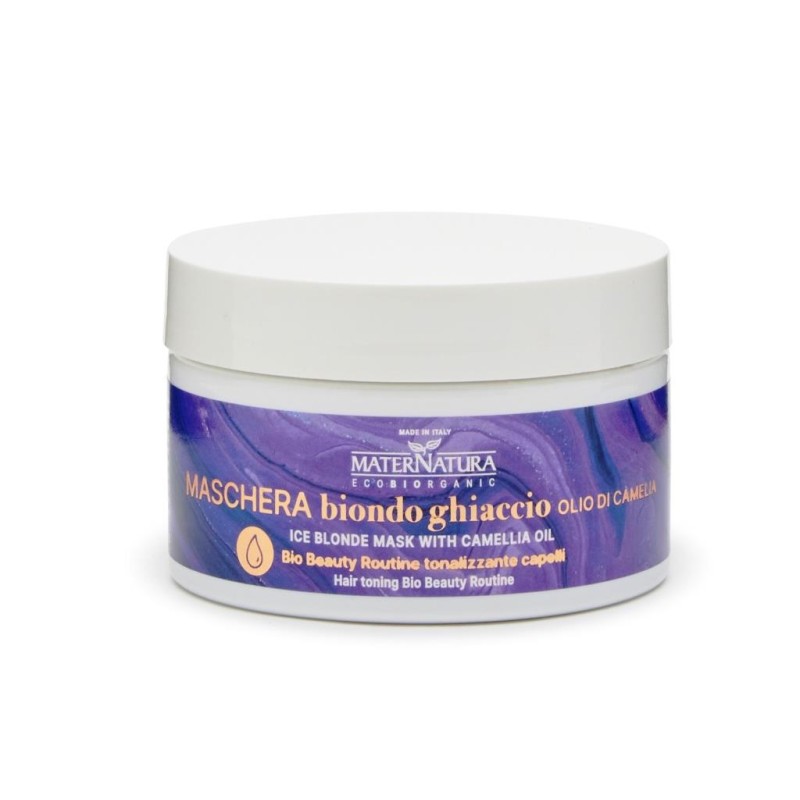MATERNATURA MASCHERA BIONDO GHIACCIO- Maska tonująca LODOWY BLOND, przeciw żółtym odcieniom, z olejem kameliowym, 200 ml