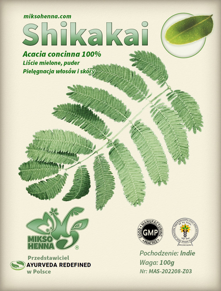 Skład: Shikakai (acacia concinna), liście mielone – puder, 100%