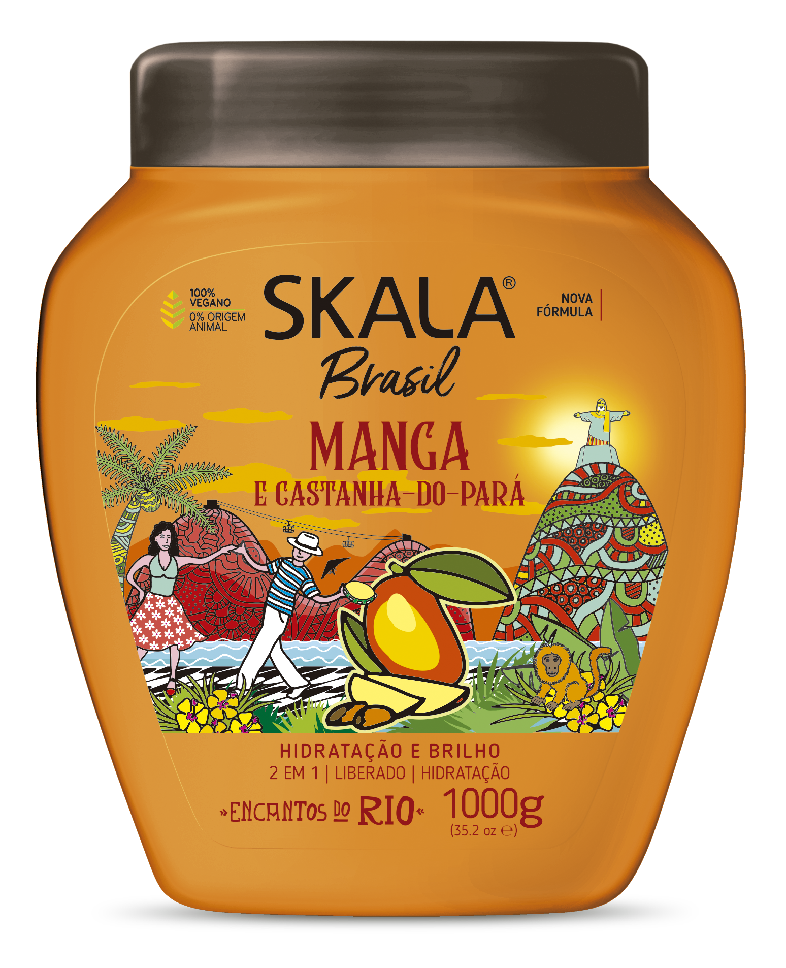 Linia Skala Brasil Encantos do Rio Mango i Castanha-do-Pará przywraca włosom wilgoć, nawilżając je i redukując puszenie. Castanha-do-Pará to majestatyczne drzewo typowe dla amazońskich lasów deszczowych, które osiąga wysokość 48 metrów. Zbierane jest w sezonie jesiennym i wiosennym.