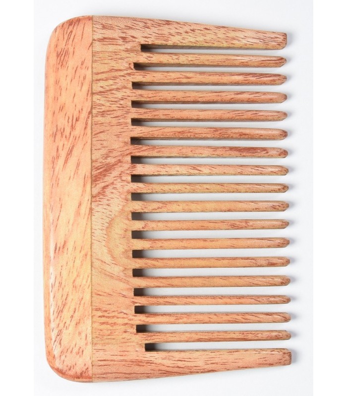 Grzebień z drzewa neem nie posiada żadnych ostrych czy topornych boków dzięki czemu nie uszkadza włosów.