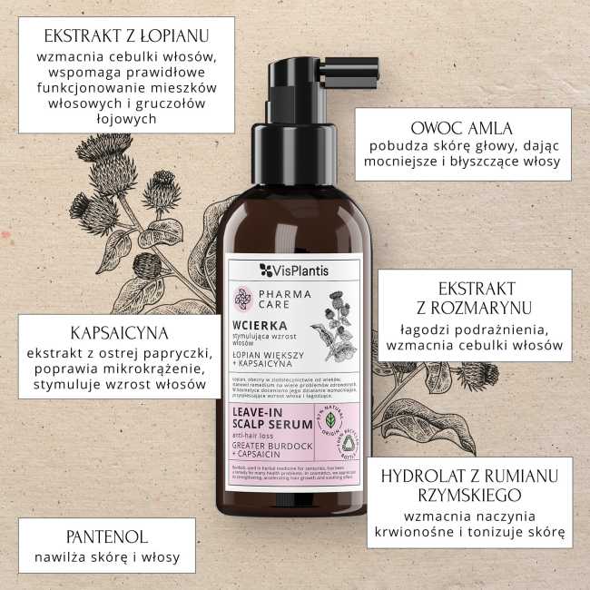 VIS PLANTIS PHARMA CARE – Wcierka stymulująca wzrost włosów, łopian większy + kapsaicyna